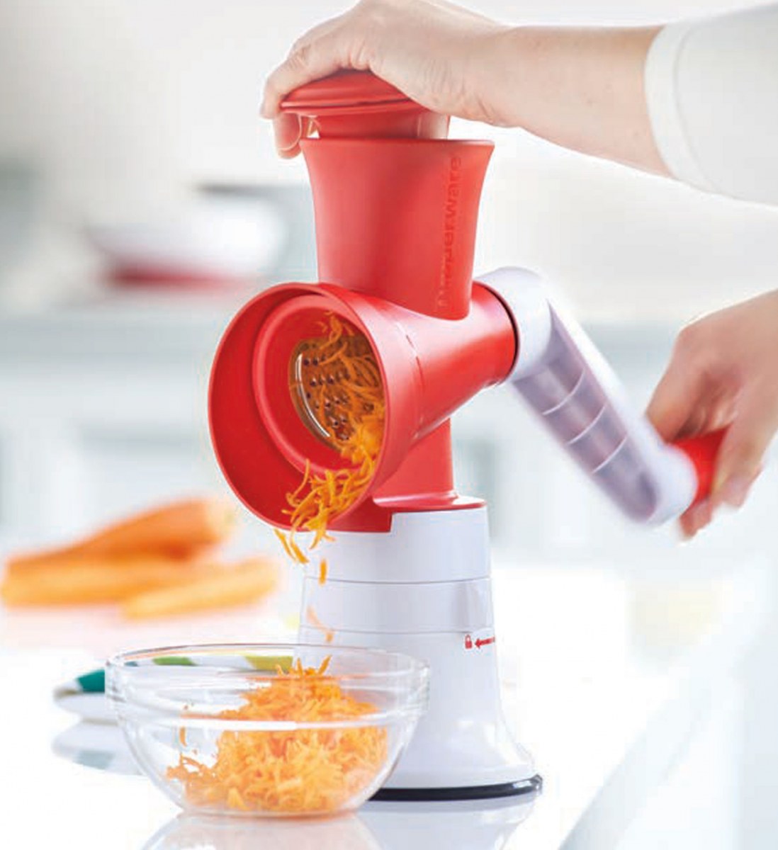 Просто вставьте нужную насадку в корпус, прикрутите ручку и разместите чашу под корпусом для того, чтобы натертый продукт собирался в ней: несколько поворотов ручки и все готово!