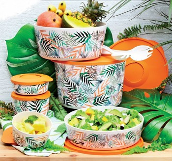 Набор контейнеров «Иллюмина» представляет собой комплект посуды, предназначенной для хранения съестных припасов, а также их транспортировки. Ваши гости и домочадцы во время застолья, несомненно, обратят внимание на веселую необычную расцветку компактусов tupperware этой серии, которая подарит хорошее настроение и тему для непринужденной беседы. Приготовленные дома соусы, десерты, пироги, салаты без проблем выдержат любые условия переноски, если они будут аккуратно сложены в контейнеры «Иллюмина», таким образом, вы сможете порадовать друзей и коллег по работе во время пикников, корпоративной вечеринки или же домашних посиделок.