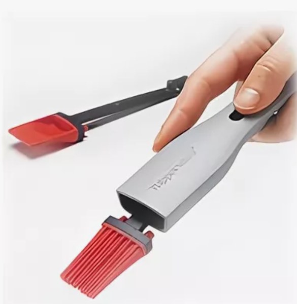 Кулинарная Силиконовая кисточка «Совершенство» состоит из ручки-основания с механизмом из силиконовых волокон и силиконовой лопаточки.