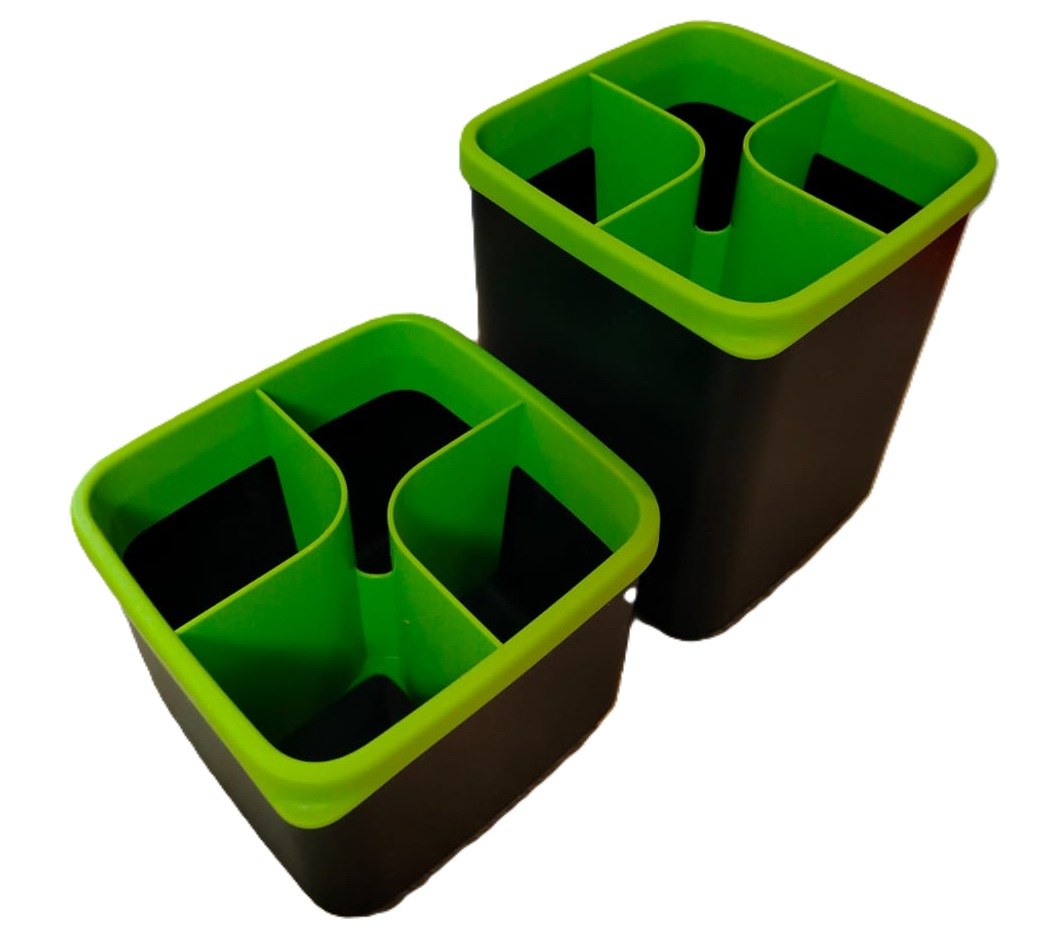 Подставка разделена на четыре секции. Такая конструкция обеспечивает устойчивость, так как приборы не скучиваются в одном месте и не опрокидывают изделие.