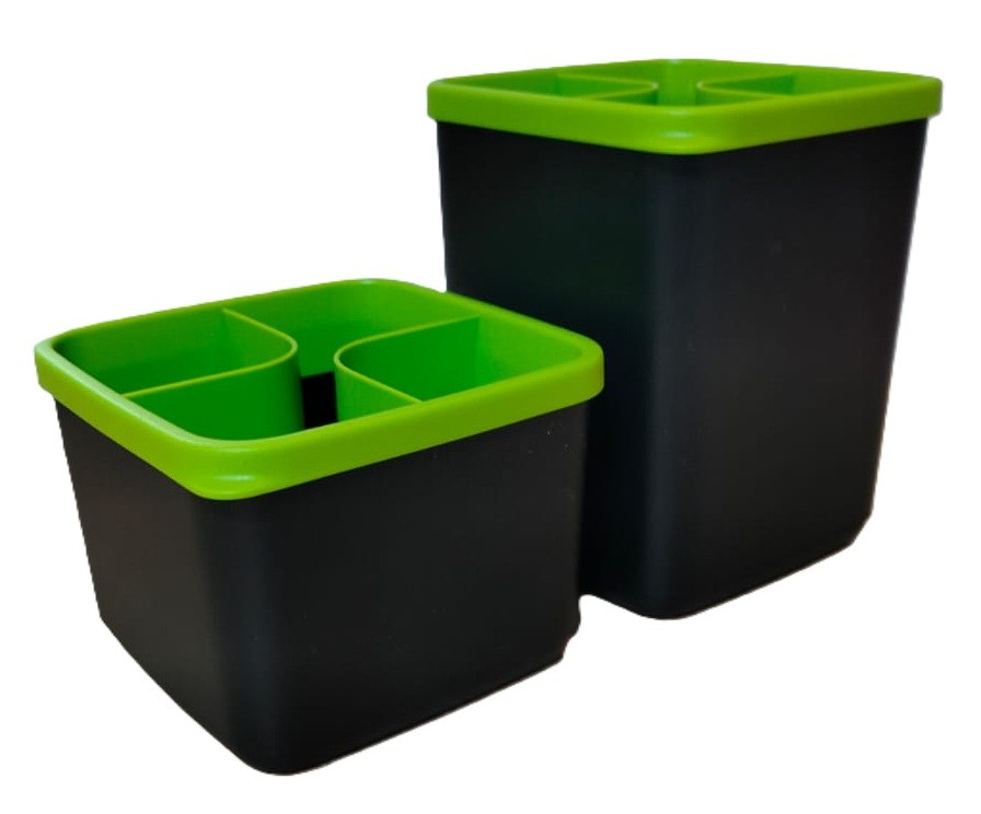 В отделении кухонного шкафа столовые приборы из полимера могут покрываться царапинами из-за контакта с ножами, металлическими ложками и вилками. В специальной подставке такого не случится.