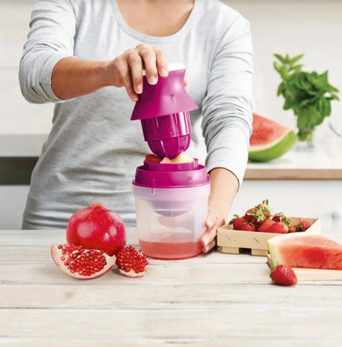 Для отжимания сока из мягких ягод и фруктов используйте все части изделия.