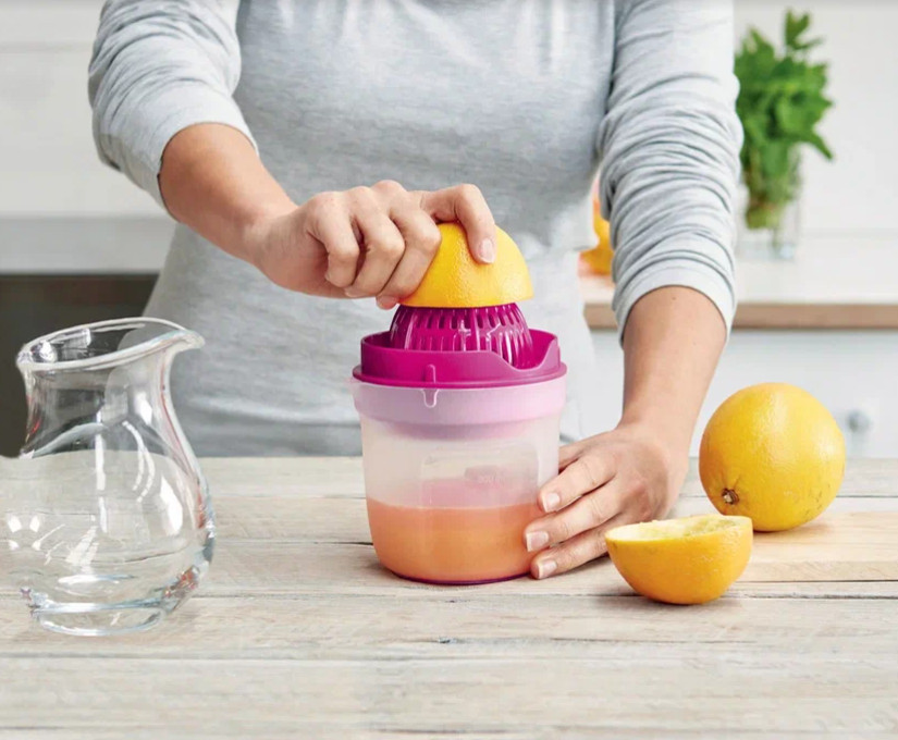 «Турбо-Джус» состоит из основания объёмом 500 мл, пресса и вставки-соковыжимателя.