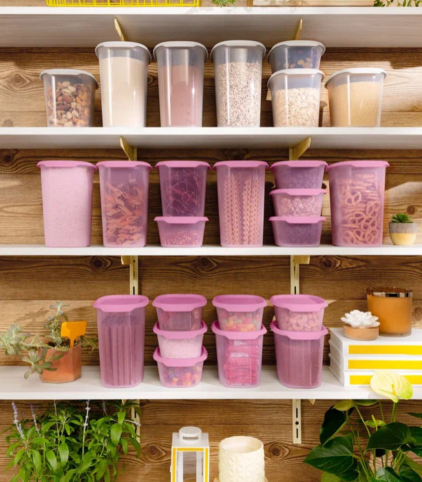 Контейнеры удобно хранить, помещая один в другой, что позволяет существенно экономить место в кухонных шкафах.