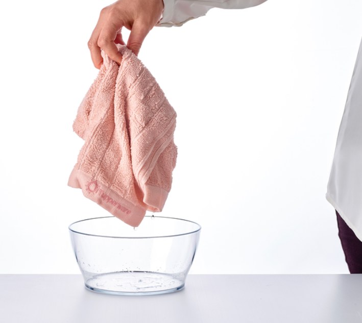 Для удаления загрязнений стирайте изделие моющими средствами, предназначенными для стирки вручную, или в стиральной машине, в холодной воде или при температуре, не превышающей 60°C. Для достижения наилучших результатов, кладите полотенце в отдельный мешочек перед стиркой в стиральной машине, чтобы внешние волокна не прилипали к стенкам машинки.
