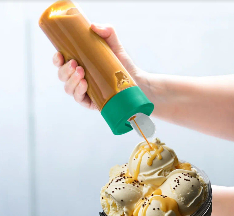 Основание контейнера для соуса имеет небольшие углубления для удобного захвата пальцами. Крышка соусницы изготовлена из плотного полимера и имеет дополнительный клапан, закрывающий отверстие для соуса с помощью легкого нажатия. Клапан крышки служит надежным барьером от пыли и попадания мелких насекомых. Кроме того, плотно закрытая крышка дольше сохранит соус свежим.
