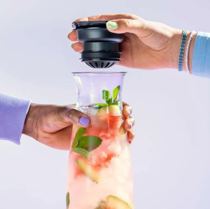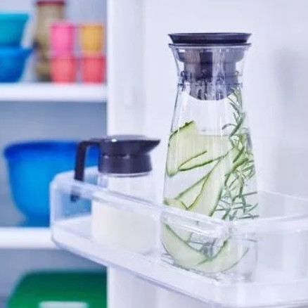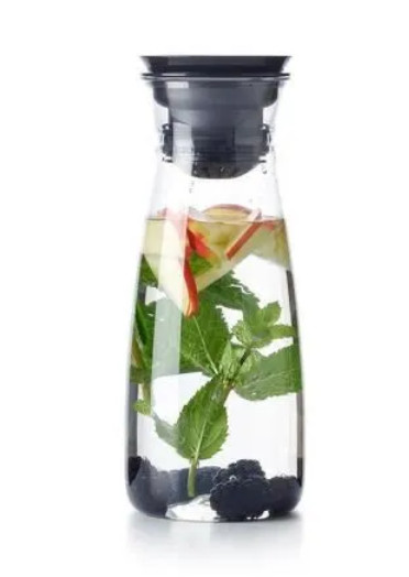 - Для того, чтобы налить напиток в стакан, достаточно наклонить графин. Крышка при этом не снимается.