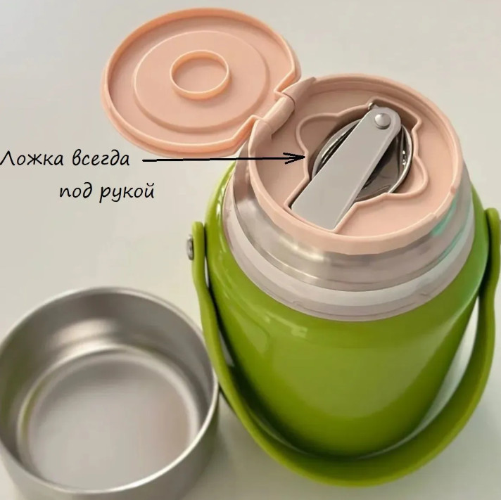Термос для еды (1л) с ложечкой зелёный