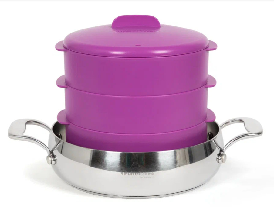 Удобная и стильная пароварка от Tupperware – это возможность быстро и недорого баловать себя и близких полезными блюдами. Основные составляющие пароварки – крышка и два лотка, которые размещаются друг в друга. На дне каждого лотка расположены отверстия.