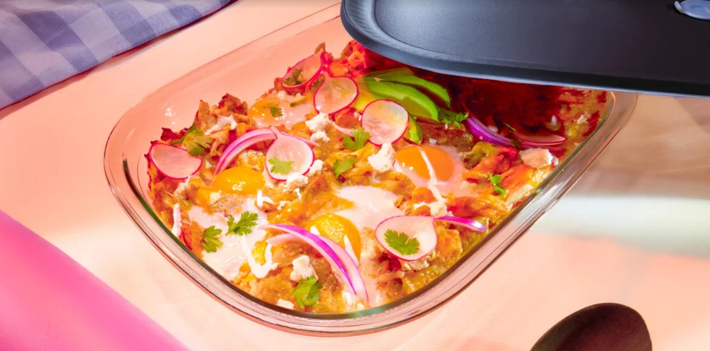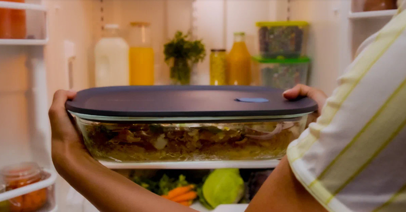 При размораживании в холодильнике оставьте блюдо на ночь с закрытой крышкой и клапаном. При размораживании в микроволновой печи оставьте блюдо при комнатной температуре на 10 минут, затем откройте клапан и разогревайте на низкой мощности.
