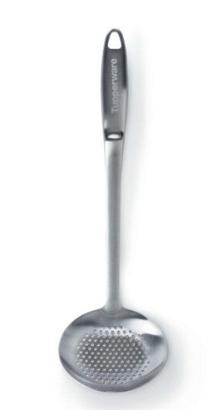 Эта большая ложка с отверстиями используется для извлечения готовых продуктов (картофеля, мяса, яиц и т.д.) из воды, для обжаривания во фритюре и бланширования овощей. Шумовкой также удобно снимать пену с поверхности бульона и варенья.