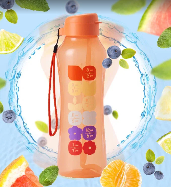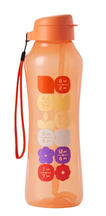 Следите за потреблением воды: красочные значки на одной стороне бутылки показывают уровень увлажнения организма, а маркеры на другой стороне измеряют потребление воды.