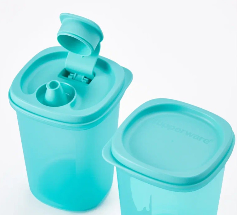 Изделие состоит из прозрачного основания квадратной формы объемом 440 мл, и крышки 3 класса с клапаном. Плюс дополнительная крышка без клапана.