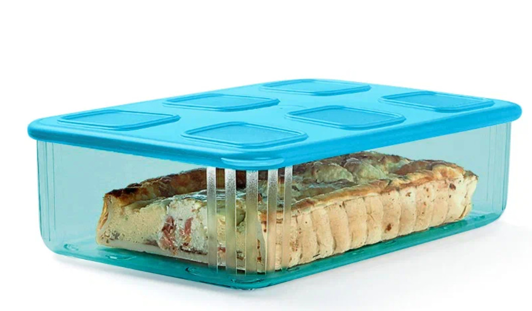 Ножки на дне основания и квадратные пазы на крышке гарантируют безопасное и устойчивое расположение контейнеров разных объёмов друг на друге.