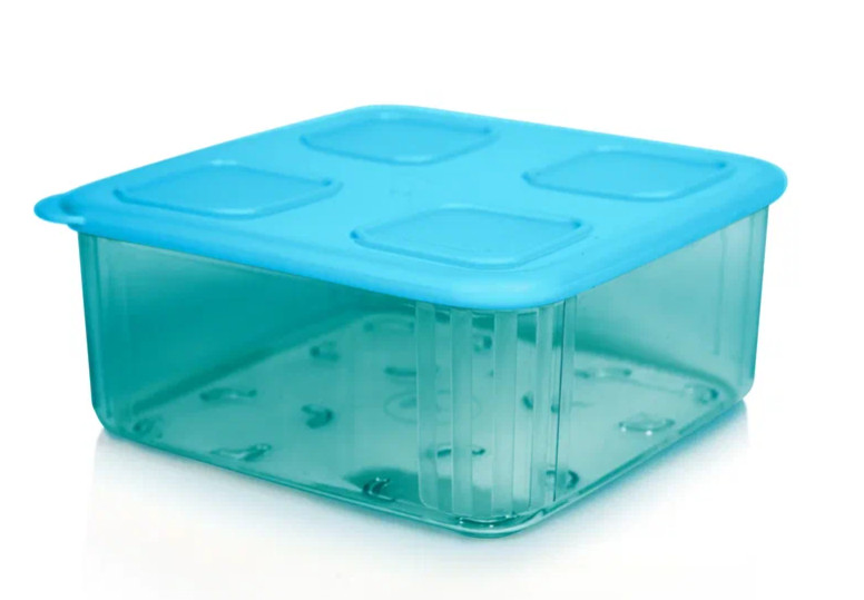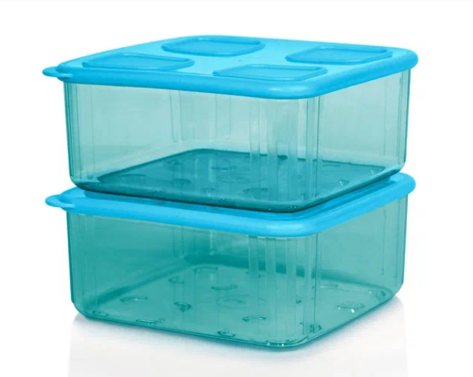 Ножки на дне основания и квадратные пазы на крышке гарантируют безопасное и устойчивое расположение контейнеров разных объёмов друг на друге.