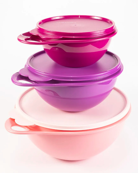 Часто на кухне возникает проблема: удобная емкость, но нет ручки или, наоборот, посуда с ручкой, но она совершенно не подходит для определенных манипуляций. Например, миски, которые могут выскальзывать из рук, но при этом они остаются незаменимыми в процессе приготовления блюд. Производители Tupperware решили этот вопрос, оборудовав миски удобными ручками с вырезами для больших пальцев.