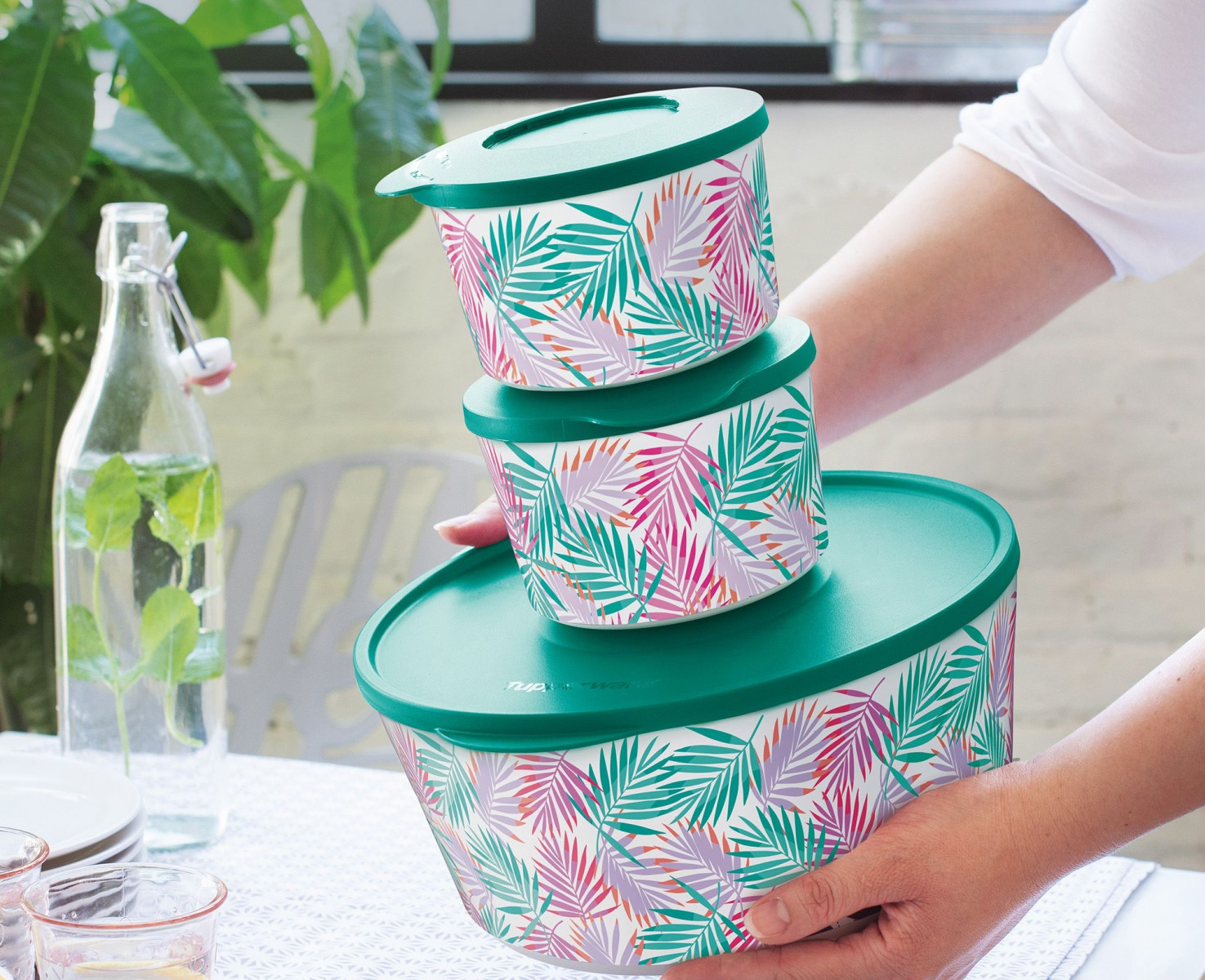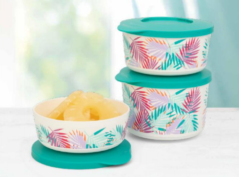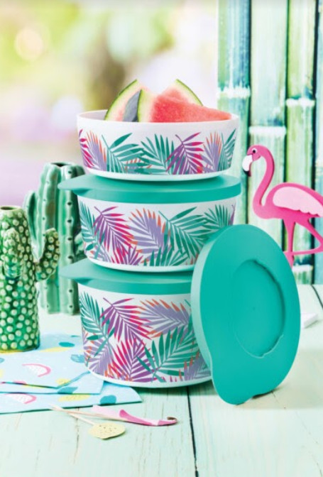 Набор контейнеров «Иллюмина «Тропикана» представляет собой комплект посуды, предназначенной для хранения съестных припасов, а также их транспортировки. Ваши гости и домочадцы во время застолья, несомненно, обратят внимание на веселую необычную расцветку компактусов tupperware этой серии, которая подарит хорошее настроение и тему для непринужденной беседы. Приготовленные дома соусы, десерты, пироги, салаты без проблем выдержат любые условия переноски, если они будут аккуратно сложены в контейнеры «Иллюмина», таким образом, вы сможете порадовать друзей и коллег по работе во время пикников, корпоративной вечеринки или же домашних посиделок.