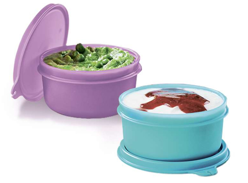 Соответствующие контейнерам герметичные крышки круглой формы также в количестве 2 штук, которые помогают сохранить продукты свежими.